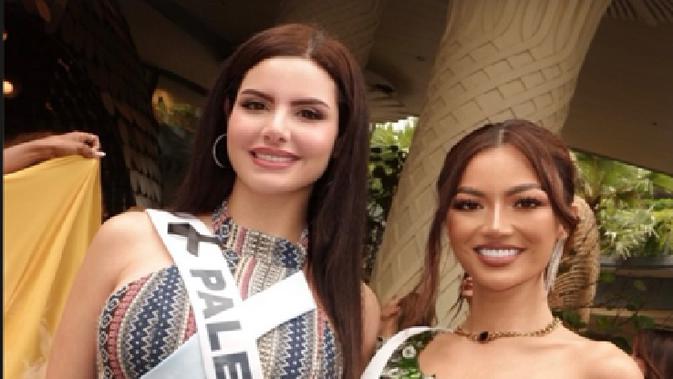 Style Promosi Miss Universe 2025, Wakil Indonesia Sanly Liu Berfoto Bersama Miss Palestina